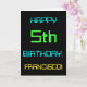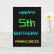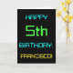 Den här enkla och roligt-hälsningskortet har ett meddelande som "LYCKLIG 5 BIRTHDAY, FRANCISCO!". Den har också en roligt som är inspirerad av digital datoranvändning. Namn på framsidan och meddelandet på insidan kan anpassas. Den kan skickas eller ges till någon som firar sin femte födelsedag och som kanske arbetar som systemadministratör, datorprogrammerare, nätverksadministratör, elnätsadministratör, ingenjör, utvecklare av software eller som på annat sätt har nytta av att använda datorer. [~Z0000100]