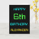 Den här enkla och roligt-hälsningskortet har ett meddelande som "LYCKLIG 6e BIRTHDAY, ALEXANDER!". Dess utseende inspireras av fält i den digitala datoranvändningen. Namn på framsidan och meddelandet på insidan kan anpassas. Den kan skickas eller ges till någon som firar sin sjätte födelsedag och som kanske arbetar som systemadministratör, datorprogrammerare, nätverksadministratör, elnätsadministratör, ingenjör, utvecklare av software eller som på annat sätt har nytta av att använda datorer. [~Z0000100]