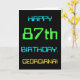 Den här enkla symbolen för hälsningskort på roligten innehåller ett meddelande som "LYCKLIG 87:e BIRTHDAY, GEORGIANA!". Den har också en roligt som är inspirerad av digital datoranvändning. namn på framsidan och meddelandet på insidan kan vara personlig. Den skulle kunna skickas eller ges till någon som firar sin åttiosjunde födelsedag och som kanske arbetar (eller arbetade före pension) som databasadministratör, datorprogrammerare, nätverksadministratör, utvecklare av software, en elektrisk ingenjör eller som på annat sätt tycker om att använda datorer. [~Z0000100]