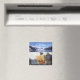 Roligt diskmaskinens magnet, med ett foto av rent blått glaciärt vatten, där den vita texten står Clean på ena halvan av magneten. Den andra halvan av magnet har ett foto av ett smutsigt vattenfall med brunt text som läser Dirty. Gör en underbar värdinna-gåva.