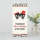 Roligt döskallar Halloween-ceremonin och party-programmet med ett svart par och en groom på elfenbensbakgrund och en skalle från mönster gräns. Gumman har en hatt och brudgummen en buk. Denna moderna och contemporary gotiska stil bröllop-malldesign är perfekt för ett Halloween-bröllop.