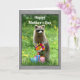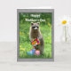 Om du gillar tvättbjörnar kommer du att älska detta fadersdagskort. Detta kort har en tvättbjörn som står upp och håller en bukett blommor med inslagna presenter på marken. Det finns en högtidlig hälsning som du kan anpassa med dina egna ord.