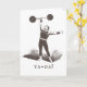 Roligt fadersdags kort med vintage illustration av cirkus strongman med humor. Personliga anpassade citat läses som: "ta-da!" och Glad fadersdag till den bästa pappan. (Du krossar det totalt.)