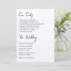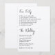 Den här moderna och minimalistiska bröllopsinbjudan från stil har en enkel design med elegantens svarta typsnitt, utskrivet i stil på en lista. En lista med roligt om bruden och brudgummen eller paret skrivs ut överst,[ följt av bröllop. Det är ett enkelt och unikt sätt att underhålla dina gäster och låta dem se en personlig sida av dig.
