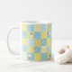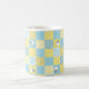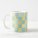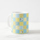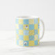 En söt och roligt Coffee Mugg, med Faux Patchwork-design av fårmotiv och mönster i Blues and , som har samordnat Check Ginghams och Polkas Dots.