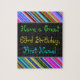 Den här roligten, färglös och vismisk födelsedagskalemageldesign har en varm födelsedagsönskan som "Ha en Underbar 63:e födelsedag, första Namn!". Namn kan vara personlig. Toppen och grund har en levande, flerfärgad rand mönster. Ett sådant pussel skulle kunna vara ett roligt sätt att leverera önskemål på födelsedagen till någon som firar sin sextiotredje födelsedag. [~Z0000268]