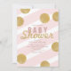 Anpassa den här Roligten och Snyggten Modern Baby Shower-inbjudan med stora faux glitter-cirklar i guld på en rosa och vit, rand bakgrund. Perfekt för ett flicka. Observera att glitter i guld är ett färg-tryck (gult) och inte är en metallisk folie av färg eller guld eller glitter i guld.