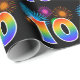 Den här roligten, med ett sjudande omslag i papper design, har ett färgstarkt berömmande fyrverkeripjäs inspirerat mönster, tillsammans med siffran "10" med ett flerfärgat regnbåge inspirerat mönster, på en svart färgad. Om man slår papper som detta kan det kanske användas när man slår in gåvor eller presenter på någons tioårsdag, eller kanske för ett par tioårsjubileum bröllop eller något annat tioårsevenemang. [~Z0000322]