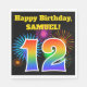 Den här roligten har en sjudande papper napkin-design med ett färgstarkt berömmande fyrverkerier som inspirerat mönster, tillsammans med siffran "12" med en flerfärgad regnbåge som övertonande mönster, på en svart färgad. Det innehåller också ett anpassade namn och ett händelsemeddelande. Pappra servetter som denna kan användas vid ett party som hålls för att fira någons tolfte födelsedag. [~Z0000326]
