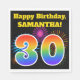 Den här roligten har en sjudande papper napkin-design med ett färgstarkt berömmande fyrverkerier som inspirerat mönster, tillsammans med siffran "30" med en flerfärgad regnbåge som övertonande mönster, på en svart färgad. Den innehåller också ett eget namn och ett händelsemeddelande. Pappra servetter som denna skulle kanske kunna användas vid ett party som hålls för att fira någons trettioårsdag. [~Z0000326]