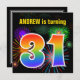 Den här roligten har en sjudande födelsedagsfest inbjudan-design med en färgstark mönster inspirerad av brinnande fyrverkerier, tillsammans med siffran "31" med en flerfärgad regnbåge som spektrum eller gradient mönster. Namn på framsidan kan anpassas. Baksidan innehåller personlig om party. Födelsedagsfest inbjudan som detta kan skickas till gäster från inbjudan till en födelsedagsfest som hålls för att fira någons trettioförsta födelsedag. [~Z0000337]