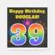 Den här roligten har en sjudande papper napkin-design med färgstarka berömmande fyrverkerier som inspirerat mönster, tillsammans med siffran "39" med ett flerfärgat regnbågsinspirerat mönster, på en svart färgad. Det innehåller också ett anpassade namn och ett händelsemeddelande. Pappra servetter som denna kan användas vid ett party som hålls för att fira någons trettionionde födelsedag. [~Z0000326]