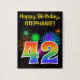 Den här roligten har ett dynamiskt pussel med en färgstark mönster inspirerad av högstämda fyrverkerier, tillsammans med siffran "42" med en flerfärgad regnbåge som övertonande mönster, på en svart färgad. Det innehåller också ett anpassade namn och ett händelsemeddelande, t.ex. en födelsedag hälsning. Ett sådant pussel kan vara ett roligt sätt att skicka ett födelsedagsmeddelande för att fira någons fyrtioandra födelsedag. [~Z0000329]