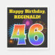 Den här roligten har en sjudande papper napkin-design med färgstark mönster inspirerad av högljudda fyrverkerier, tillsammans med siffran "46" med en flerfärgad regnbåge som övertonande mönster på svart färgad. Det innehåller också ett personlig namn och ett händelsemeddelande. Pappra servetter av detta slag kan användas vid ett party som hålls för att fira någons fyrtiosjätte födelsedag. [~Z0000326]