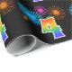 Den här roligten har en papper utformning som är sjudande och som ger en färgstark mönster som inspirerats av berömda fyrverkerier, tillsammans med siffran "4" med en flerfärgad regnbåge som mönster, på en svart färgad. Om man slår papper som detta kan det kanske användas när man slår in gåvor eller presenter för någons fjärde födelsedag, eller kanske för ett par fjärde bröllop-årsdagen eller för något annat fjärde evenemang. [~Z0000322]