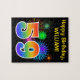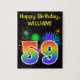 Den här roligten har ett dynamiskt pussel med en färgstark mönster inspirerad av högstämda fyrverkerier, tillsammans med siffran "59" med en flerfärgad regnbåge som övertonande mönster, på en svart färgad. Det innehåller också ett personlig namn och ett händelsemeddelande, t.ex. en födelsedag hälsning. Ett sådant pussel kan vara ett roligt sätt att skicka ett hälsning-födelsedagsmeddelande till någon som firar sin femtionionde födelsedag. [~Z0000329]