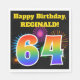 Den här roligten har en sjudande papper napkin-design med färgstarka, berömmande fyrverkerier som inspirerat mönster, tillsammans med siffran "64" som har en flerfärgad regnbåge som övertonande mönster på svart färgad. Det innehåller också ett anpassade namn och ett händelsemeddelande. Pappra servetter som denna kan användas vid en födelsedagsfest som hålls för att fira någons sextiofjärde födelsedag. [~Z0000326]
