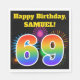 Den här roligten har en sjudande papper napkin-design med färgstark mönster inspirerad av högljudda fyrverkerier, tillsammans med siffran "69" med en flerfärgad regnbåge som övertonande mönster på svart färgad. Det innehåller också ett anpassade namn och ett händelsemeddelande. Pappra servetter av detta slag kan användas vid ett party som hålls för att fira någons sextionionde födelsedag. [~Z0000326]
