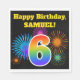 Den här roligten har en sjudande papper napkin-design med ett färgstarkt berömmande fyrverkeripjäs inspirerat mönster, tillsammans med siffran "6" med en flerfärgad regnbåge som mönster, på en svart färgad. Det innehåller också ett anpassade namn och ett händelsemeddelande. Pappra servetter av detta slag kan användas i ett party som hålls för att fira någons sjätte födelsedag. [~Z0000326]