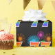 Den här roligten har en papper utformning som är sjudande och sjudande fyrverkerier som inspirerat mönster, tillsammans med siffran "77" som har en flerfärgad regnbåge som övertonande mönster på svart färgad. Att packa pappert som detta skulle kanske kunna användas när man slår in gåvor eller presenter ges för någons sjuttiosjunde födelsedag, eller kanske för ett pars sjuttiosjunde bröllop-årsdag eller något annat 77:e evenemang. [~Z0000322]