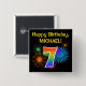 Den här roligten har en sjudande knappdesign med en färgstark mönster som inspirerats av brinnande berömda fyrverkerier, tillsammans med siffran "7" med en flerfärgad regnbåge som spektrum eller gradient mönster. Det innehåller också ett eget namn och ett händelsemeddelande, t.ex. en "Grattis på födelsedagen"-födelsedag hälsning. En sådan knapp kan bäras av deltagarna vid en födelsedagsfest som hålls för att fira någons sjunde födelsedag. [~Z0000334]