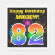 Den här roligten har en sjudande papper napkin-design med ett färgstarkt berömmande fyrverkerier som inspirerat mönster, tillsammans med siffran "82" med en flerfärgad regnbåge som övertonande mönster, på en svart färgad. Det innehåller också ett anpassade namn och ett händelsemeddelande. Pappra servetter som denna skulle kanske kunna användas vid en födelsedagsfest som hålls för att fira någons åttio andra födelsedag. [~Z0000326]
