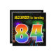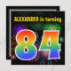 Den här roligten har en sjudande födelsedagsfest inbjudan-design med färgstarka brinnande högljudda fyrverkerier som inspirerat mönster, tillsammans med siffran "84" som innehåller ett flerfärgat regnbågsinspirerat spektrum eller övertonande mönster. Namn på framsidan kan vara personlig. Baksidan innehåller information om anpassningsbarna om party. Födelsedagsfest inbjudan som detta kan användas för gäster från inbjudan till en födelsedagsfest som hålls för att fira någons åttiofjärde födelsedag. [~Z0000337]