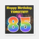 Den här roligten har en sjudande papper napkin-design som har en färgstark mönster inspirerad av berömda fyrverkerier, tillsammans med siffran "85" med en flerfärgad regnbåge som övertonande mönster, på en svart färgad. Det innehåller också ett personlig namn och ett händelsemeddelande. Pappra servetter som denna skulle kanske kunna användas vid en födelsedagsfest som hålls för att fira någons åttio femte födelsedag. [~Z0000326]