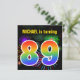 Den här roligten har en sjudande födelsedagsfest inbjudan-design med ett färgstarkt mönster inspirerat av brinnande fyrverkerier, tillsammans med siffran "89" med ett flerfärgat regnbåge inspirerat av spektrum eller övertoning mönster. Namn på framsidan kan anpassas. Baksidan innehåller anpassningsbar om party. Födelsedagsfest inbjudan som detta kan användas för gäster från inbjudan till en födelsedagsfest som hålls för att fira någons åttionionde födelsedag. [~Z0000337]