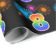 Den här roligten har en papper utformning som är sjudande och sfärande och som inspirerar mönster, tillsammans med siffran "8" med ett flerfärgat regnbågsinspirerat övertoningsfärgat mönster, på en svart färgad. Papper som denna kan användas när man slår in presenter eller gåvor som ges till någons åttonde födelsedag, eller kanske för ett pars åttonde bröllop-årsdag eller något annat åttaårsevenemang. [~Z0000322]