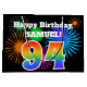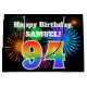 Den här roligten har en slimmad presentväska med en färgstark mönster inspirerad av högstämda fyrverkerier, tillsammans med siffran "94" med ett flerfärgat regnbågsinspirerat mönster, på en svart färgad. Det innehåller också ett anpassade namn och ett händelsemeddelande, t.ex. en födelsedag hälsning. En presentpåse som denna kan användas för att figurera en present eller gåva som ges i firande på någons nittiofjärde födelsedag. [~Z0000328]