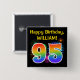 Den här roligten har en sjudande knappdesign med ett färgstarkt mönster som inspirerats av brinnande berömda fyrverkerier, tillsammans med numret "95" med ett flerfärgat regnbågsinspirerat spektrum eller gradient mönster. Det innehåller också ett eget namn och ett händelsemeddelande, t.ex. en "Grattis på födelsedagen"-födelsedag hälsning. En sådan knapp kan bäras av gästerna vid en födelsedagsfest som hålls för att fira någons 95-årsdag. [~Z0000334]
