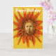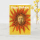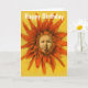 Detta kort är illustrerat med en rolig bebis-ansikte blomma som sticker ut tungan. Ovanför står texten "Grattis på födelsedagen"