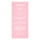Menykort för födelsedagsfest. Anpassa och lägg till namn, ålder, datum och meny. rosa. Vit färgad brev. Tillbaka: Lägg till ett foto av födelsedagsflickan, roligt fakta.
