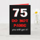 Detta roliga 75:efödelsedagkort är för manar. En milstolpe75:e förtjänar ett speciellt kort och passformar för detta kort räkningen (om den mottagareare födelsedagen har en bra avkänning av humorn.), Stora 75 visas "GÖRAR PANIKSLAGEN över INTE dig den stilla har det!", Det roligt är inre. Ta copyrightt på Kathy Henis
