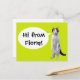 En ljusgrön bakgrund och en lustig katt som står på hans baksida i ben gör det möjligt att få ett vykort för roligt. Lägg till din egen anpassningsbar till tal-bubblan för att skapa ditt eget personlig-vykort som är perfekt för kattälskare, veterinärkontor och kattsittare.