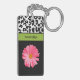 En rolig borttappad och en funnen keychain för flickan, som förlorar alltid henne saker med ett moderiktigt svartvitt leopardmönster, förskönade med en flickaktigt rosa daisy och ord: Jag har förlorade denna sak. Ja IGEN! Om du grundar den, kan du ne mig här: kontakt info.
