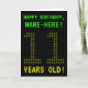 På framsidan av den här sortens redigerbara födelsedagskortsdesign finns meddelandena "GRATTIS PÅ FÖDELSEDAGEN" och "11 ÅRS GLD!", tillsammans med en personlig som tar emot namn. Meddelandena på framsidan har ett utseende som inspirerats av pixelstyrda retrovideospel. Siffrorna för det stora talet "11" på framsidan består av mindre stora "1"-siffror, ge och ASCII-konst inspirerade till utseende. Insidan innehåller ett meddelande om anpassadets födelsedag hälsning. Ett nervöst hälsningskort i stil, anpassadets födelsedagskalender som detta kan vara ett fånig för att hedra minnet av någons elfte födelsedag. [~Z0000366]