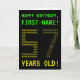 På framsidan av den här sorten finns personligens födelsedagskort med meddelandena "GRATTIS PÅ FÖDELSEDAGEN" och "57 ÅRS GLD!", tillsammans med en personlig-mottagare namn. Meddelandena på framsidan ser ut att inspireras av bildpunktsbaserade datorspel i vintagen. Siffrorna för det stora antalet "57" på framsidan består själva av mindre stora "5"- eller "7"-siffror, ge och ASCII-bildens inspirerade utseende. Insidan innehåller ett hälsning-födelsedagsmeddelande som kan anpassas. Ett nonsens stil, anpassat födelsedagskalenderkort som detta kan vara ett fånig för att fira någons femtiosjunde födelsedag. [~Z0000366]