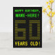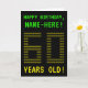 På framsidan av den här njudet finns personligens födelsedagskalendrar med GRATTIS PÅ FÖDELSEDAGEN och 60 ÅRS GAMLA!, tillsammans med en personlig-mottagare namn. Meddelandena på framsidan har ett pixelbaserat utseende på vintagens datorspel stil. Siffrorna för det stora antalet "60" på framsidan består själva av små "6"- eller "0"-siffror, ge och ASCII-bildens inspirerade utseende. Insidan innehåller ett hälsning-födelsedagsmeddelande som kan anpassas. Ett sådant här anpassat födelsedagskalenderkort som stil kan vara ett fånig för att skicka ett födelsedagsmeddelande till någon som firar sin sextioårsdag. [~Z0000366]