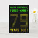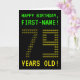 På framsidan av den här njudet finns anpassadets födelsedagskort med GRATTIS PÅ FÖDELSEDAGEN och 79 ÅRS GLD!, tillsammans med en personlig-mottagare namn. Meddelandena på framsidan har ett utseende som inspirerats av pixelstyrda retrovideospel. Siffrorna för det stora talet "79" på framsidan består av små "7"- eller "9"-siffror, ge och ASCII-bilder inspirerade till utseende. Insidan innehåller ett hälsning-födelsedagsmeddelande som kan anpassas. Ett sådant här anpassat födelsedagskalenderkort som stil kan vara ett fånig att skicka önskemål till någon som firar sin 79-årsdag. [~Z0000366]