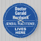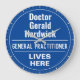 Roligt Minneshögtidlighållande av Stil Plaque Gift i form av en murklocka för en Doktor eller en allmänpraktiserande läkare. Blå och vit plack. Redigera designen om du vill ändra ordalydelsen till kostym för presentmottagaren.