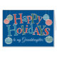 Ett roligt, textbaserat Glad helg-kort för en mordotter, med dekorationer och bokstäver, fyllt med rött, blått och grönt och polka dots, kontur i vitt på en ljusblå bakgrund. Det finns också ett framkort för anpassningsbarna med den här designen i fodral. Du kan inte hitta ett kort för den mottagare du är tittar för.