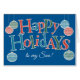 Ett roligt, textbaserat Glad helg-kort för en son, med utsmyckningar och bokstäver, fyllt med rött, blått och grönt och polka dots, kontur i vitt på en ljusblå bakgrund. Det finns också ett framkort för anpassningsbarna med den här designen i fodral. Du kan inte hitta ett kort för den mottagare du är tittar för.