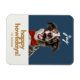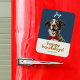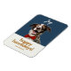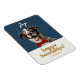 Modern, festlig och roligt. Den här julklappens flexibla magnet har en glatt hund med ett rött skål, en kombination av contemporary typsnitt och anpassad namntext. Bakgrunden färg är en mörk blått chic och baksidan av kortet har en valfri textruta om du vill att ditt meddelande ska skrivas ut. Tips! lämna textrutan tom om du vill ha ett tomt kort.