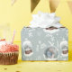 Bild på roligt god jul, lägg till ett foto och förvandla det till en söt vintersnöglob med snöflingor, berg, snögubbe, gräs, grenar, lägg till ditt namn och era hälsningar! På redigerbar isblått.