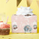 Bild på roligt god jul, lägg till ett foto och förvandla det till en söt vintersnöglob med snöflingor, berg, snögubbe, gräs, grenar, lägg till ditt namn och era hälsningar! Vid redigerbar pastellrosa