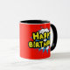 Ett kaffe mugg som är roligt och trendig, den här designen har ord "Grattis på födelsedagen" inuti en tal-bubbla med röd bakgrund. Insidan och handtaget är svarta. Beställ din i dag! Clipart: AnneIllustration https://www.etsy.com/shop/AnneIllustration