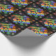 Den här roligten, som är ett sjudande pappert mönster, innehåller meddelandet "GRATTISAR, KLASS AV 2023", med brev och siffror som innehåller en färgstark regnbågsspektruminspirerad gradient mönster. Bakgrunden har ett flerfärgat brinnande fyrverkerier som inspirerat mönster. Papper som detta kan användas när man slår in presenter som ska ges i ett party för högskola, högskola eller universiteten studenten.