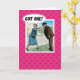 Här är ett roligt kort som gratulerar på en förlovning. Det visar en kvinna som greppar en mans huvud och utbrister "Fick en!".